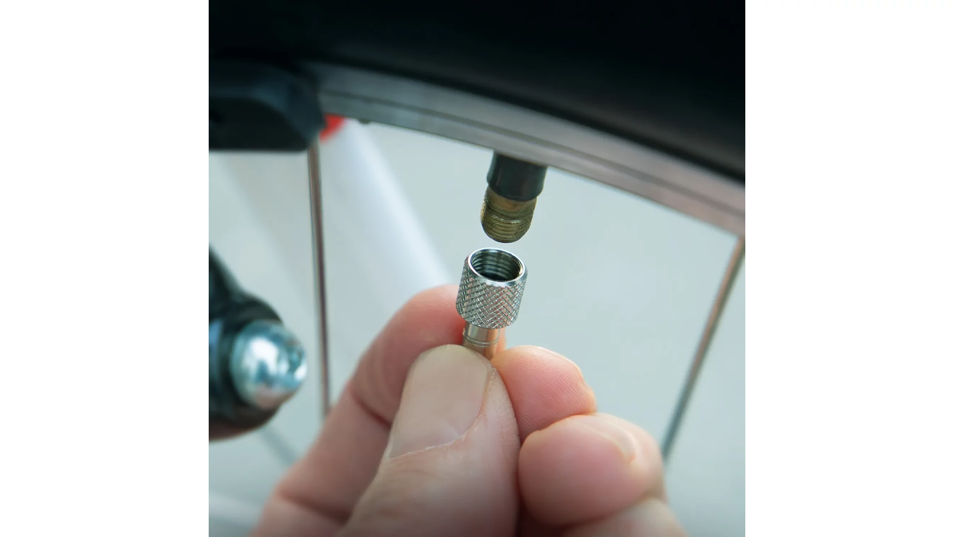 Ezután csak be kell csavarni a Schwalbe Clik Valve betétet, és a szelep máris "Clik-ready". A csomag porvédő kupakokat is tartalmaz.