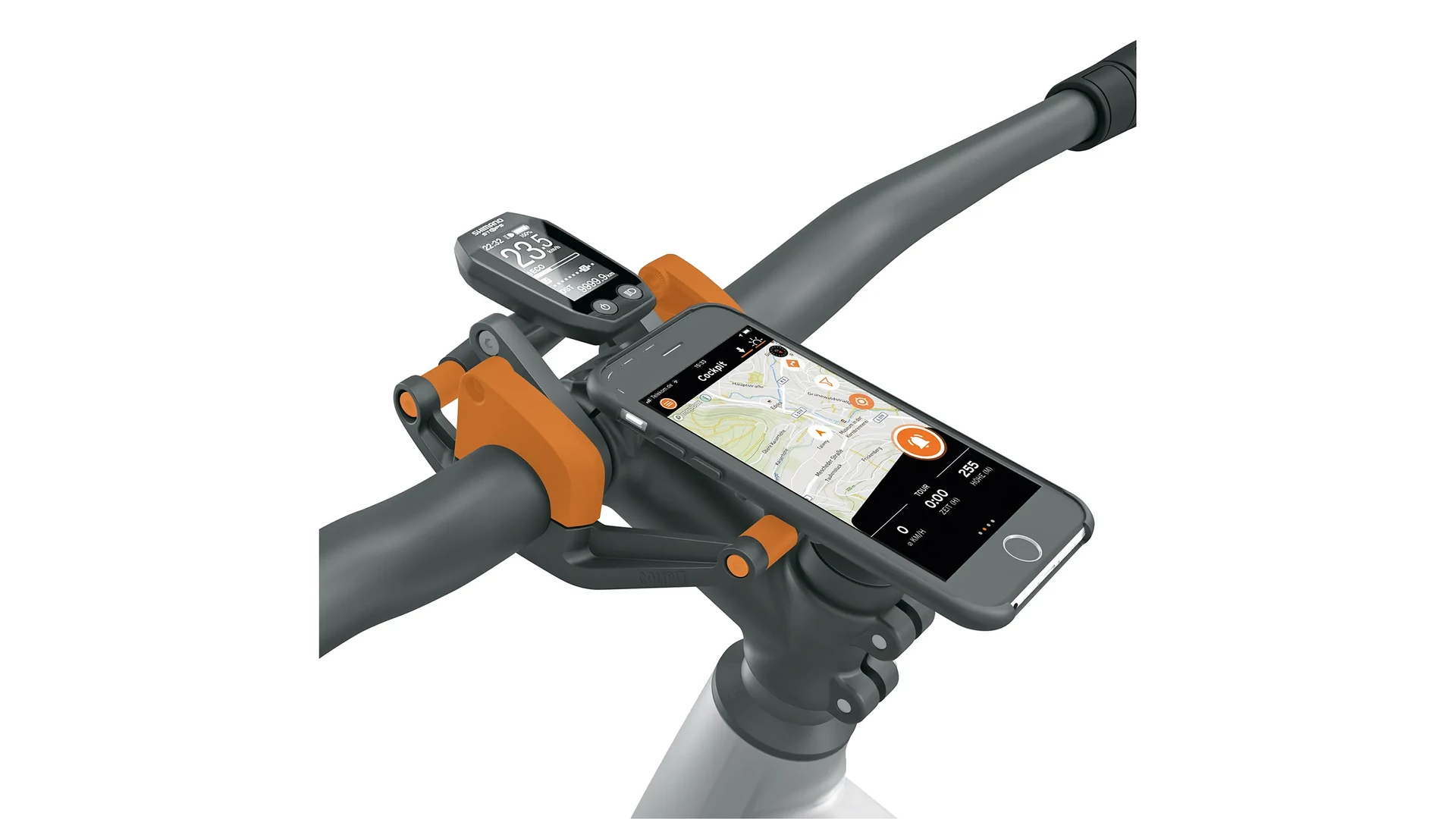 Egy mindenkinek: a COMPIT okostelefon-tartó könnyedén felszerelhető különböző kerékpárkormányokra. A rögzítőkarok mellett a mellékelt távtartókkal ellátott komplett szett lehetővé teszi azt is, hogy középső kijelzővel rendelkező e-bike-okra szereld fel, így az okostelefon és a fedélzeti komputer egységes egységet alkot a kormányon.