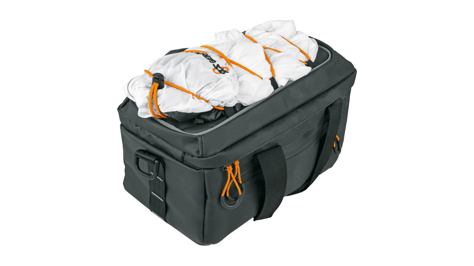 A 7 literes űrtartalom és a gumis csomagtartó háló bőséges pakolóhelyet kínál. A robusztus anyag a ragasztott varrásoknak köszönhetően teljesen vízálló. A nagy belső rekesz roll-top zárással és párnázott belső zsebekkel további védelmet nyújt az értékeknek. A táska fényvisszaverő elemekkel és hátsó lámpa rögzítésére szolgáló hurokkal is fel van szerelve.