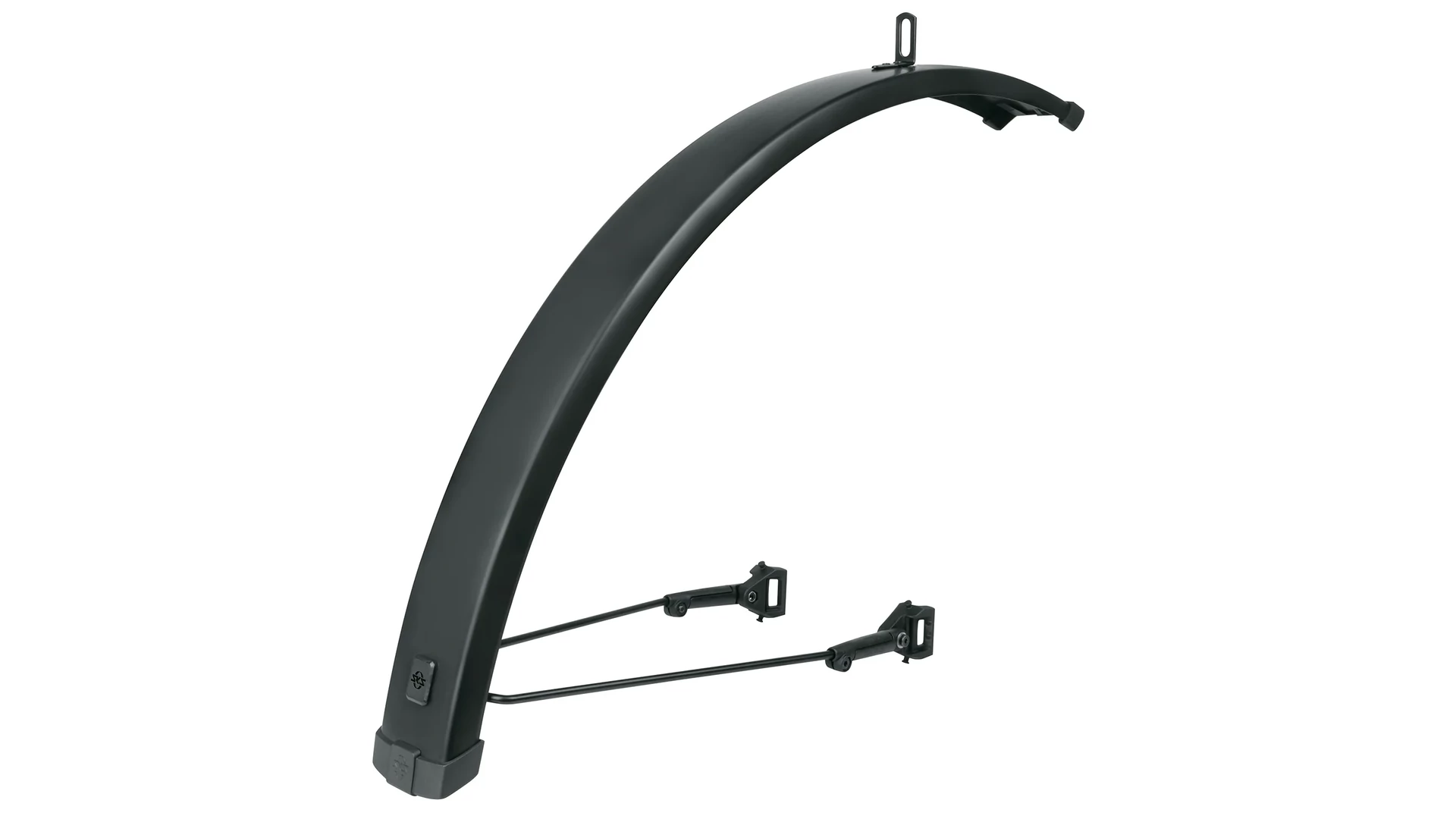 A matt fekete felületű Infinity Universal Mudguard első sárvédő az Infinity Universal Mudguard csomagtartóra szerelhető hátsó sárvédő párja. Egy konzol segítségével pillanatok alatt a villa hídjára csavarozható, vagy puha rögzítőpántokkal is felszerelhető. Az U-alakú tartó a villára erős, strapabíró tépőzáras pántokkal rögzíthető.