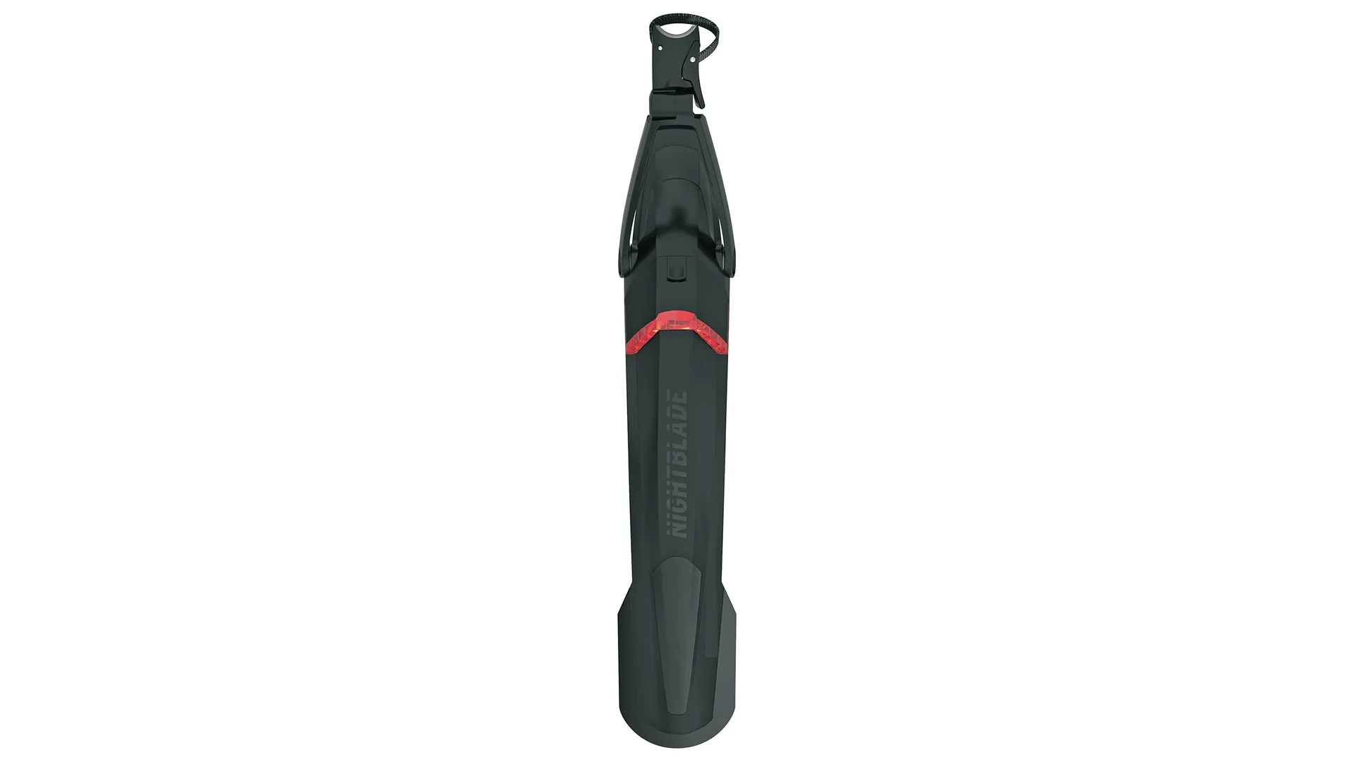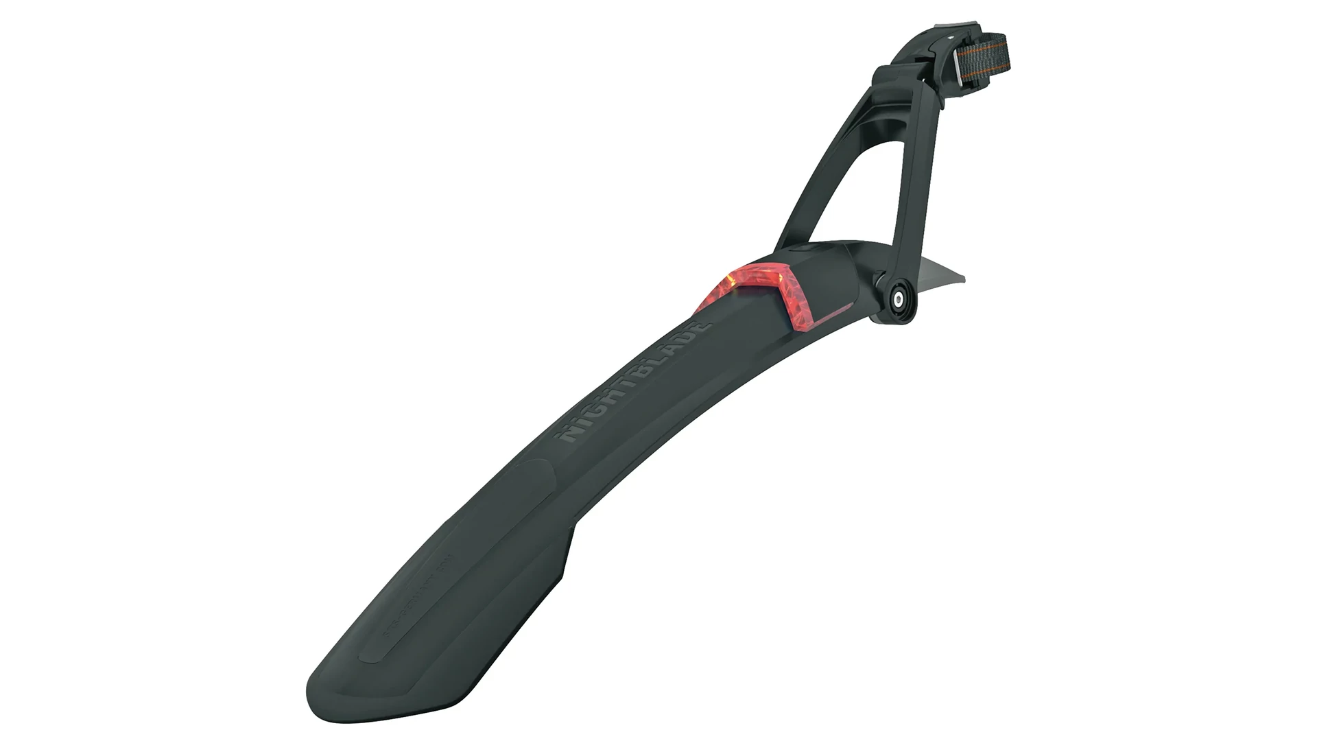 A puhább műanyagból készült spoiler felszálláskor és leszálláskor élvédőként is funkcionál. Az egyszerű gyorsrögzítési rendszernek köszönhetően a Nightblade power strap pántokkal szinte bármilyen nyeregcsőre felszerelhető, a 2-csuklós technológia pedig lehetővé teszi, hogy a sárvédőt tökéletesen a mountain bike geometriájához igazítsd.