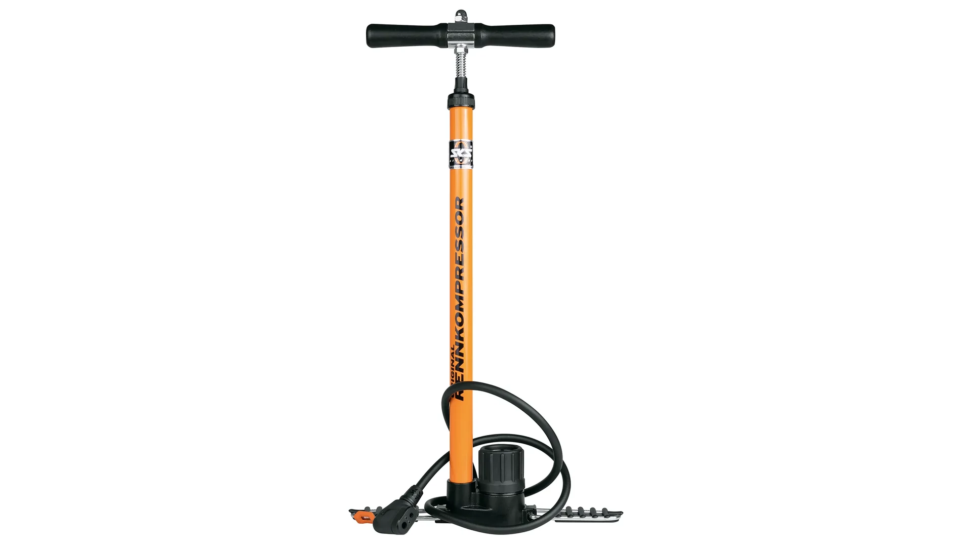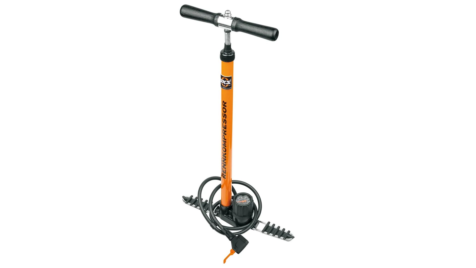 Az állópumpa az ikonikus SKS narancssárga színben készül, és opcionálisan két különböző szelepcsatlakozással érhető el: E.V.A. fejjel vagy a továbbfejlesztett "MV EASY" MULTI VALVE fejjel. A nagy teljesítményű pumpa akár 16 bar / 230 psi nyomásig képes felfújni a kerékpárgumikat.