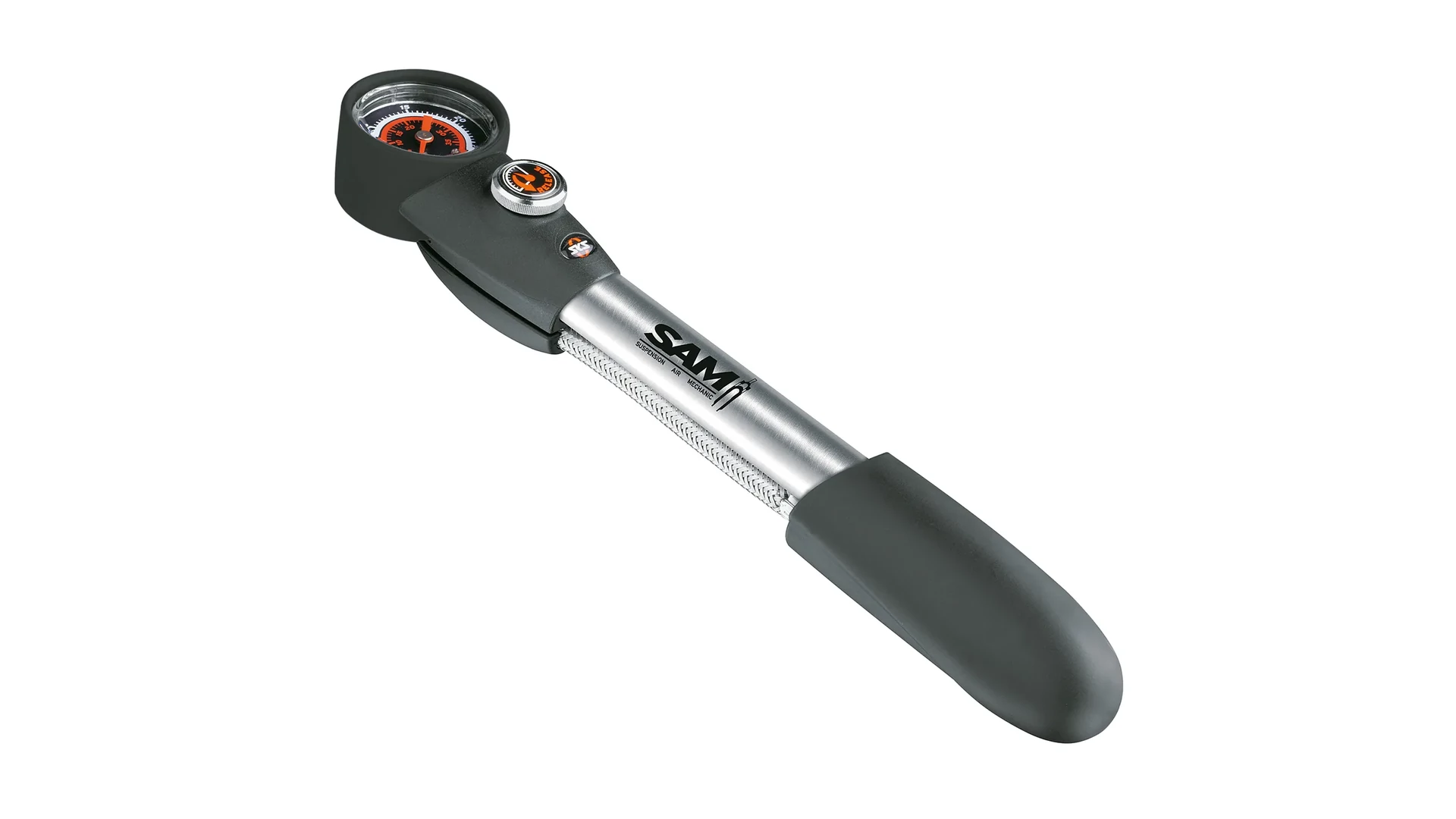 A kompakt SKS SAM (Suspension Air Mechanic) teleszkóp- és rugóstag-pumpa elforgatható tömlőcsatlakozással rendelkezik, amelyet rugalmas acélháló erősít meg, és akár 25 bar maximális nyomás elérésére is képes. A Schrader szelepes csatlakozás kétlépcsős menetes kialakítású, így a pumpa lecsavarása nyomásveszteség nélkül történik.