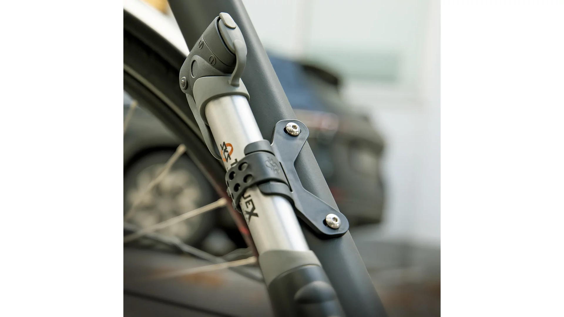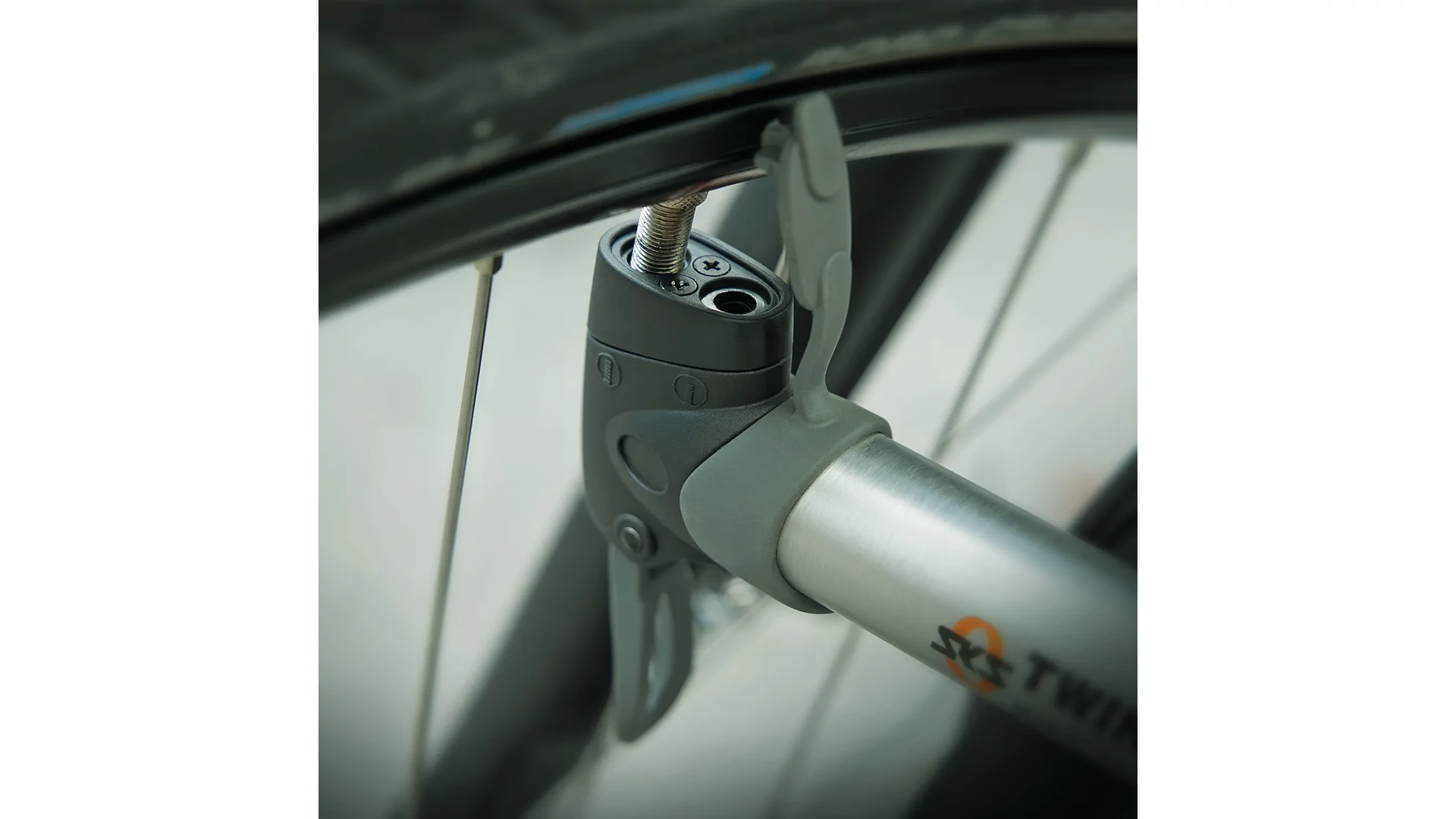 A csatlakoztatható nagy nyomású fokozat segítségével a kerékpárgumik könnyedén felfújhatók akár 10 bar nyomásig. A leszorító kar biztonságos rögzítést biztosít a szelepen. A pumpa univerzális MULTI VALVE szelepcsatlakozással rendelkezik, és pumpatartóval együtt érkezik.
