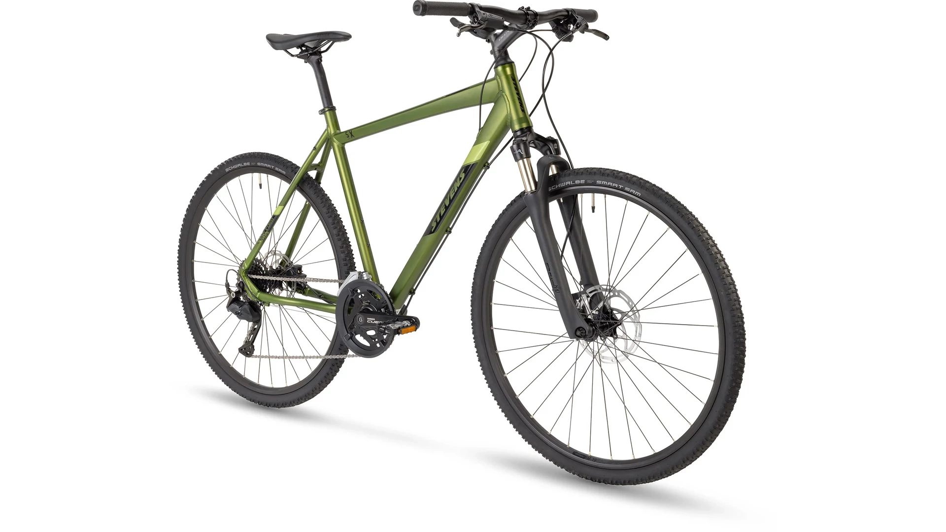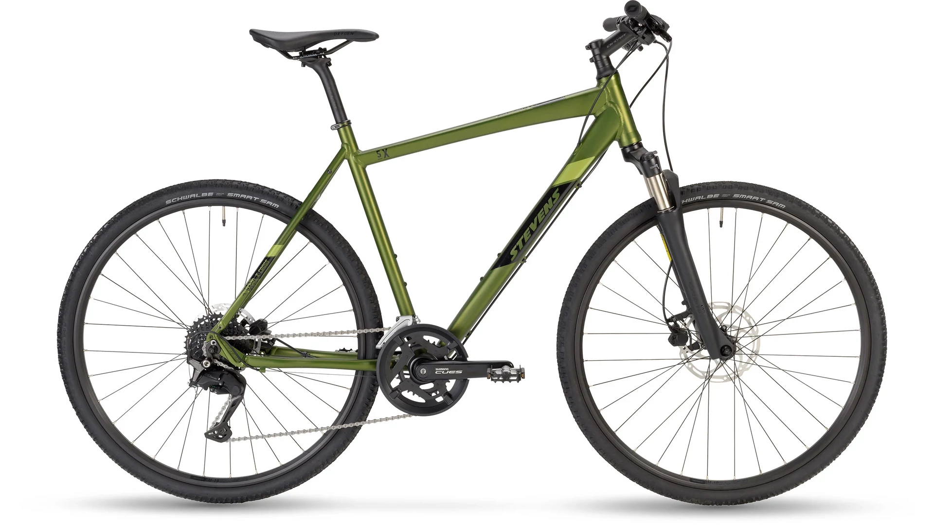 A 5X robusztus felszereltséggel érkezik: Schwalbe Smart Sam gumiabroncsai jó tapadást biztosítanak aszfalton és murvás úton is. Az Oxygen felnik és a kényelmes nyereg hosszabb távokon is komfortos használatot garantálnak. A STEVENS 5X egy megbízható, sokoldalú társ a mindennapokban és a túrák során.