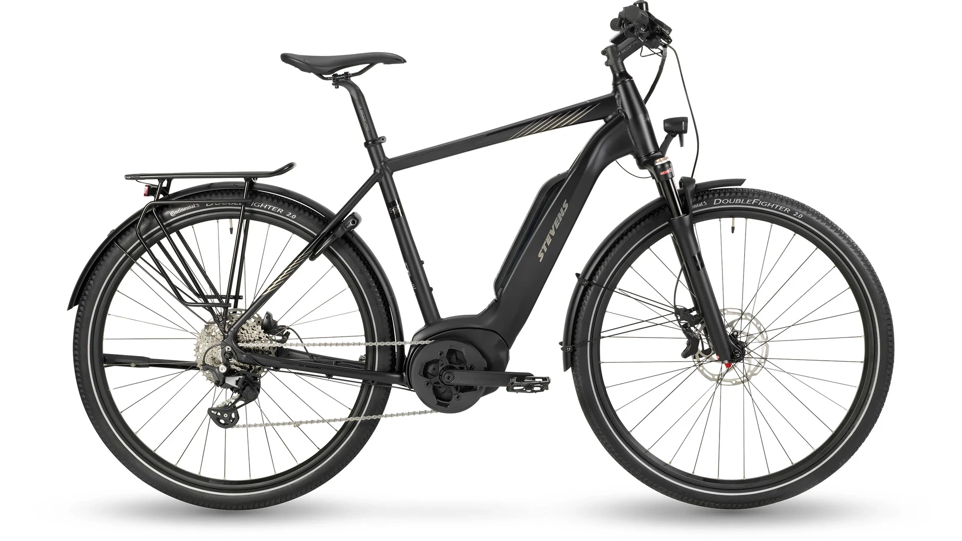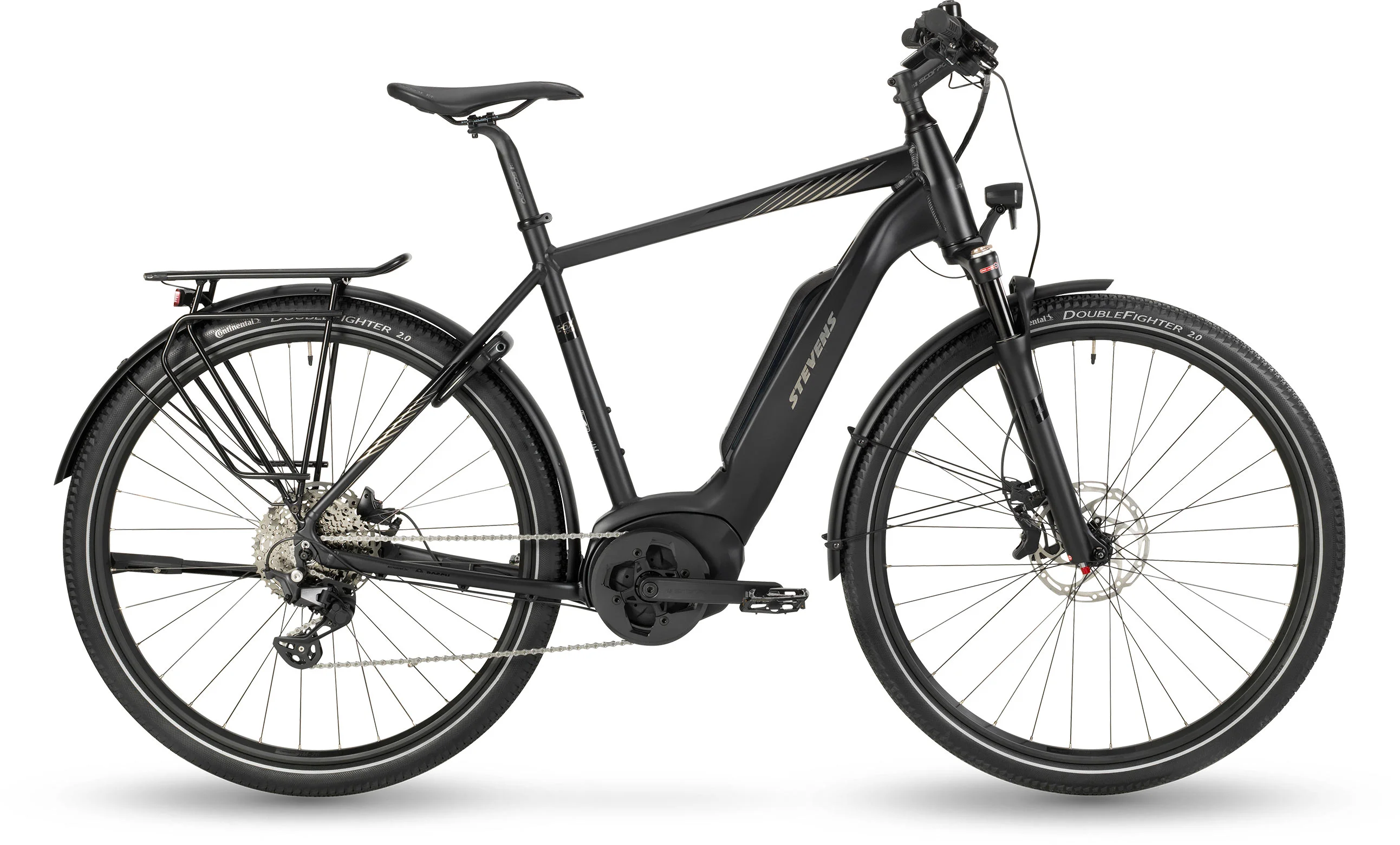 A Tektro hidraulikus tárcsafékek erőteljes és jól adagolható fékezést nyújtanak, így minden helyzetben biztonságos irányíthatóságot garantálnak. A Continental gumik megbízható tapadást és kényelmes gördülést biztosítanak, akár városi utakon, akár murvás szakaszokon közlekedsz. A STEVENS E-6X Tour tökéletes választás mindazok számára, akik egy erős, kényelmes és praktikus elektromos trekking kerékpárt keresnek a mindennapokra és a túrázásokhoz.