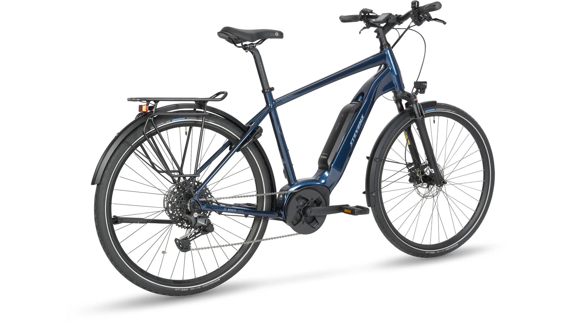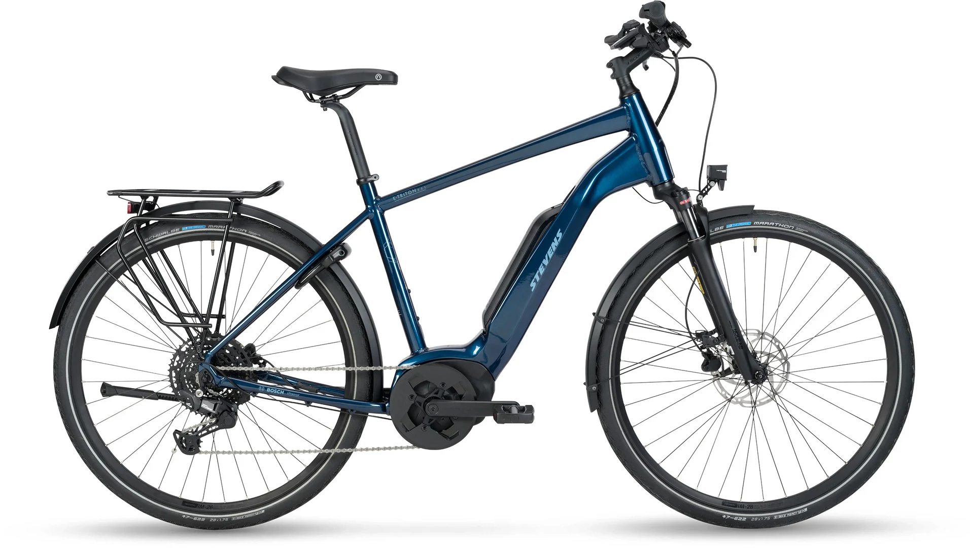 A Tektro hidraulikus tárcsafékek biztonságos fékezést garantálnak minden időjárási körülmény között, a Schwalbe gumik pedig kiváló tapadást és kényelmes gördülést biztosítanak. A kerékpár teljes trekking felszereléssel érkezik: sárvédőkkel, csomagtartóval, kitámasztóval és világítással, így azonnal bevethető a mindennapi közlekedésben. A STEVENS E-Triton 5.5.1 tökéletes választás mindazoknak, akik egy megbízható, erős és sokoldalú elektromos trekking kerékpárt keresnek a mindennapokra és a hosszabb túrákhoz.