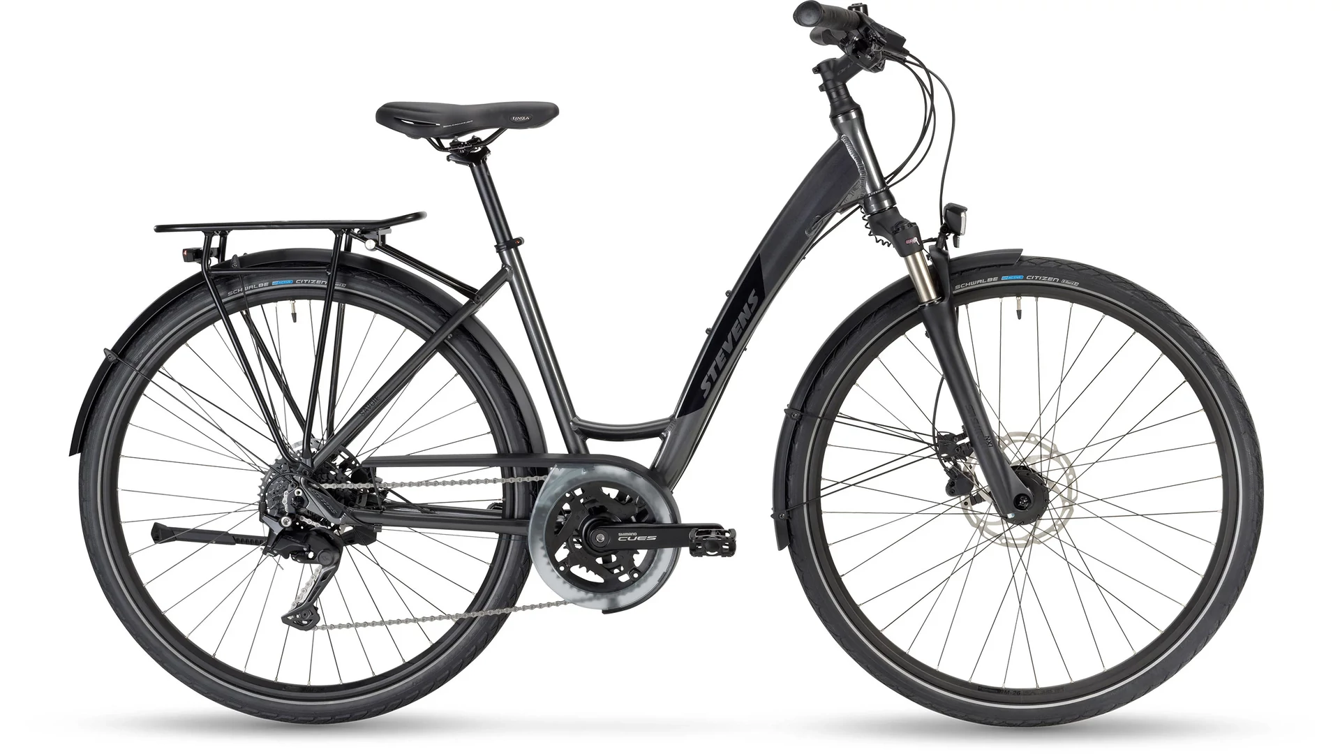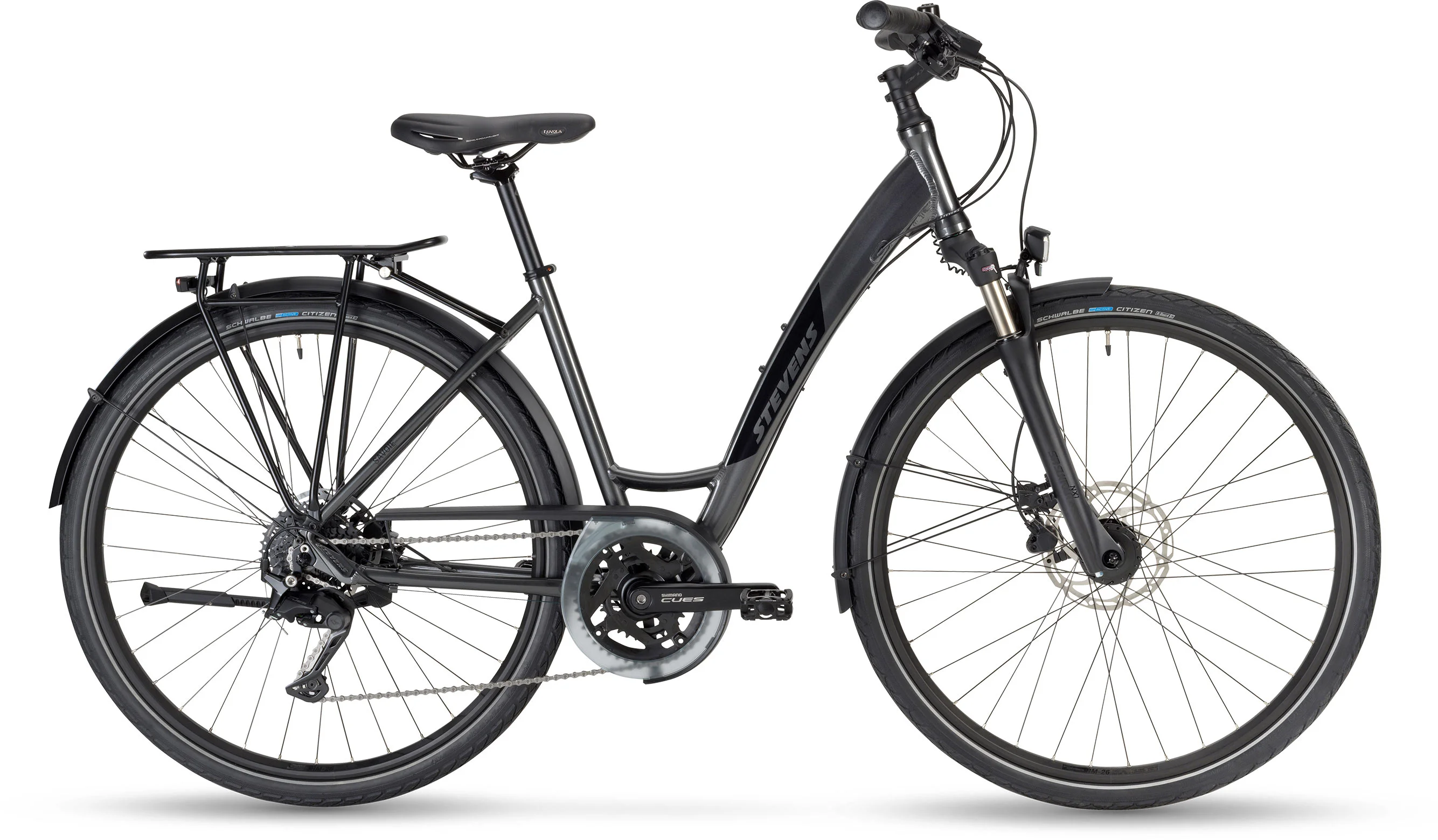 A 2024-es STEVENS Savoie könnyű, mégis erős alumínium vázzal készül, amely stabilitást és kényelmet kínál mindennapi használat során. A 63 mm-es rugóúttal rendelkező SR Suntour teleszkópos villa hatékonyan csillapítja az út egyenetlenségeit, lockout funkciójának köszönhetően pedig szükség esetén merev villává alakítható a hatékonyabb haladás érdekében.