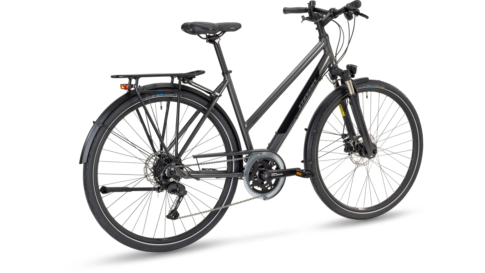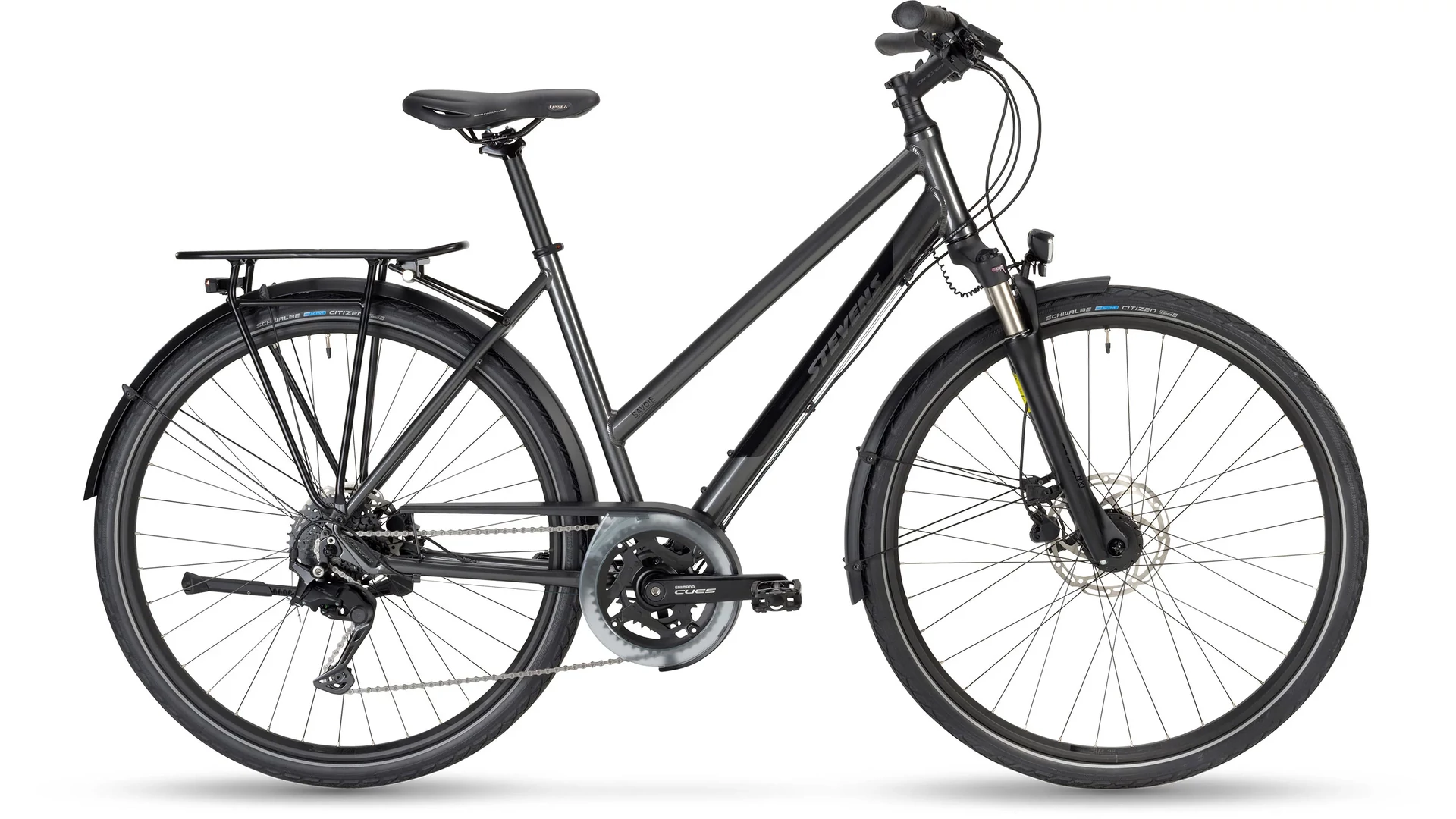 A 2024-es STEVENS Savoie könnyű, mégis erős alumínium vázzal készül, amely stabilitást és kényelmet kínál mindennapi használat során. A 63 mm-es rugóúttal rendelkező SR Suntour teleszkópos villa hatékonyan csillapítja az út egyenetlenségeit, lockout funkciójának köszönhetően pedig szükség esetén merev villává alakítható a hatékonyabb haladás érdekében.