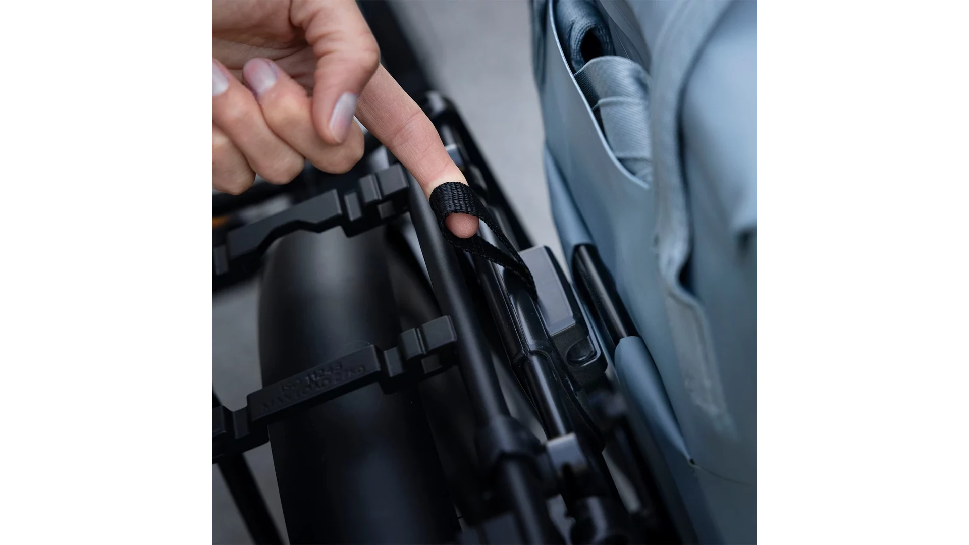 Csúsztasd rá az InLock kompatibilis táska hátlapját a csővázra, majd a hüvelykujjaddal pattintsd a helyére
